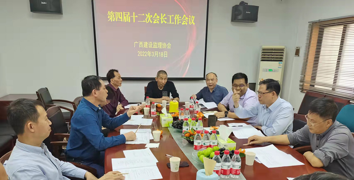 2022年3月18日下午,广西建设监理协会第四届十二次会长工作会议在本会会议室召开。本会会长、副会长、秘书长及监事共11人参加了会议,部分南宁市外的副会长为配合疫情防控请假。 会议首先针对住房和城乡建设部起草的《工程监理企业资质标准(征求意见稿)》进行讨论,参会人员在本会秘书处前期广泛征集汇总全区监理企业意见的基础上,重点针对意见稿中企业资信能力、技术负责人要求、注册监理工程师数量、企业工程业绩以及设计或施工企业申请监理资质的准入标准等方面进行了研讨,并结合我区监理行业现状、企业实际情况提出了建议和意见,本会秘书处将于会后进一步整理完善我区关于《工程监理企业资质标准(征求意见稿)》的反馈意见汇总重新报送中国建设监理协会。